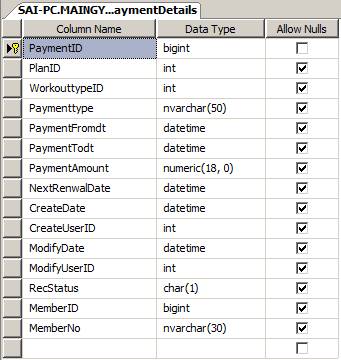 The table contains all the payment details of members. MemberID is Foreign key in this table.