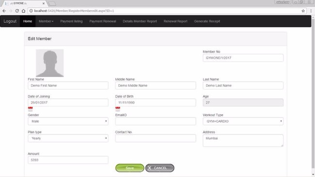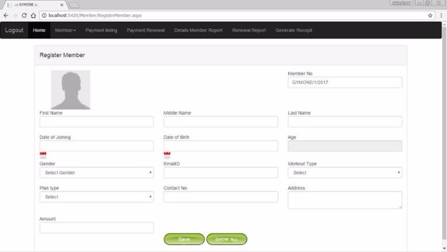 This project focuses completely on the GYM process. The process starts with membership. When a member newly joins the gym, he is registered in the GYM Software by System User. While registering, the system will ask the member about the type of plan he would like to take (GYM+CARDIO or just GYM) and for how long, he will be joining the GYM (Quarterly, Half Yearly, Yearly). According to this, the fees of the gym are decided.