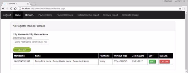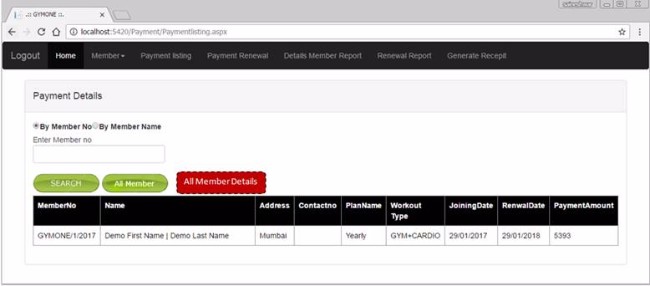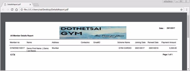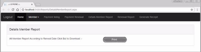 The third report is Details Member Report where we display all the members who are registered in the GYM.