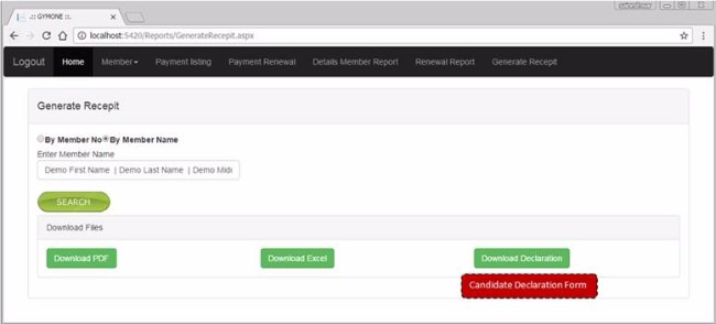 After registering, the member is given a receipt and declaration form. The receipt is signed by the system user and the declaration form is signed by the joinee. Along with this, the member is asked to provide legal document proof of address and photo identity. Now, the member can use gym facilities till his/her subscription is expired. After completion of this service, he needs to renew membership from System User for the next tenure(Quarterly, Half Yearly, Yearly) and pay a fee to System User for that period.