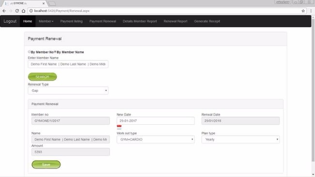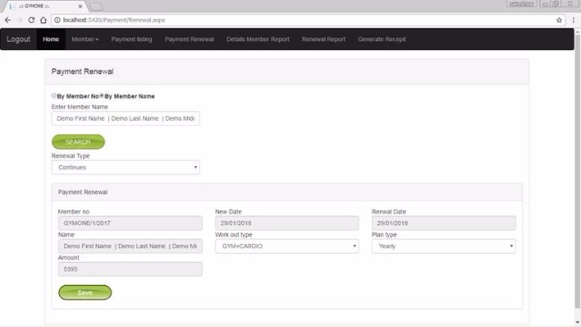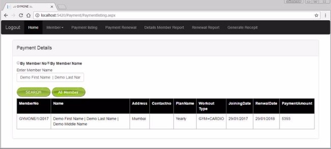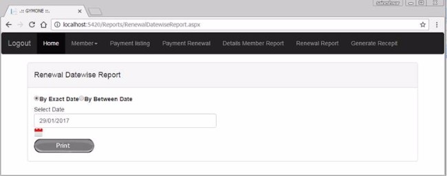 The system user also has a right to check how much has been collected this month by seeing monthly report and if he wants to check how much has been collected this year, then he can view the yearly report. Finally, he can also check the list of the users whose renewal is upcoming, so as to notify them about the renewal in advance.