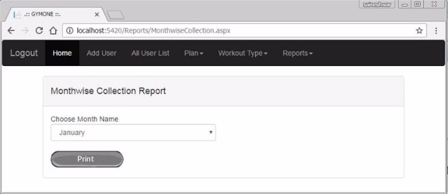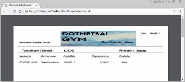 The first report which we are going to see is Monthwise Report. In this report, we are going to display all the fees collected in a particular month.