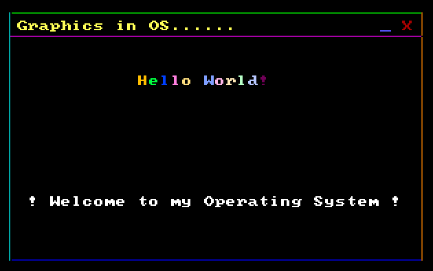 - display_text db '! Welcome to my Operating System !', 0