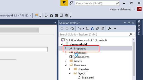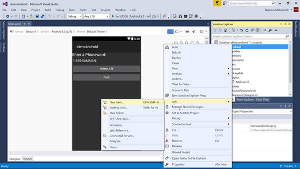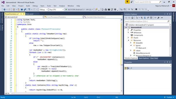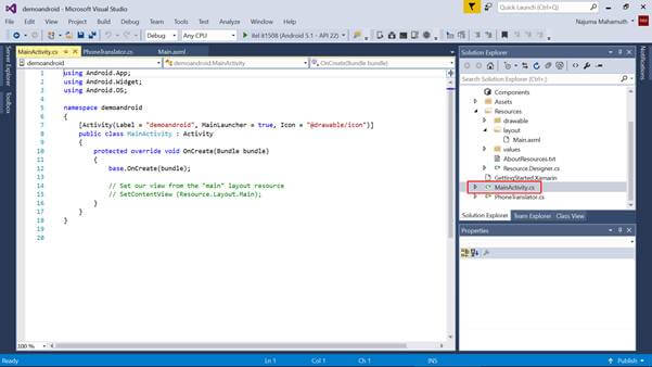Now, open MainActivity.cs under Solution Explorer, as shown below.