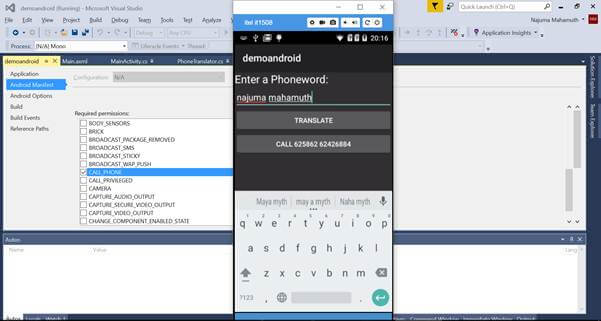Now, move for properties under Solution Explorer and add permission to set a phone call.
