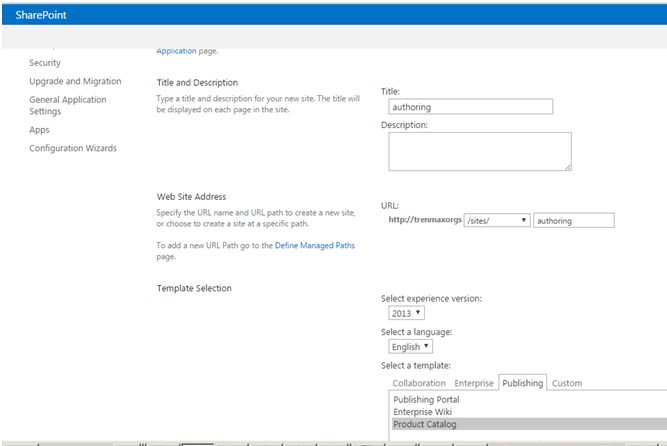While creating a site collection, create an authoring site as a product catalog or a publishing portal.