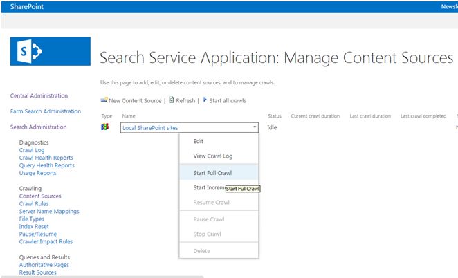 Now, it’s time to run the “Search service application” to index the content from authoring the site collection.
