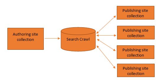 Using this feature, you can create one or more authoring site collections to store content and create one or more publishing site collections to design and show the content from the authoring site collection, using a catalog connection with the help of SharePoint search.