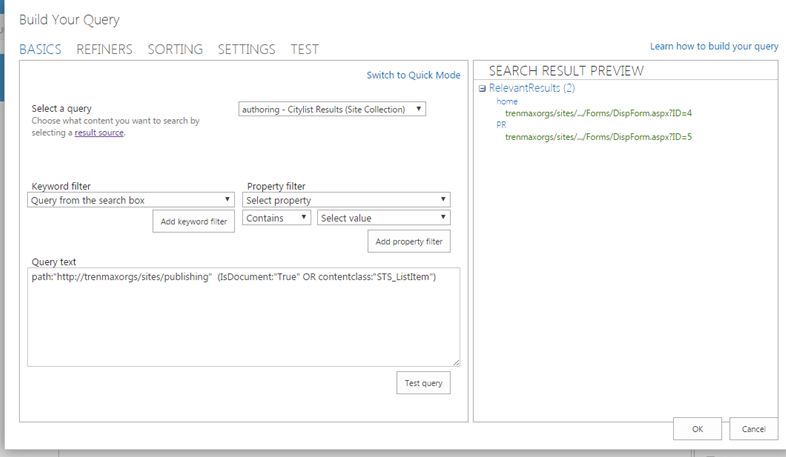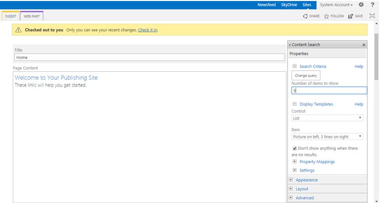 - User adds content, and searches the web part to query the content from the search in publishing the site collections.