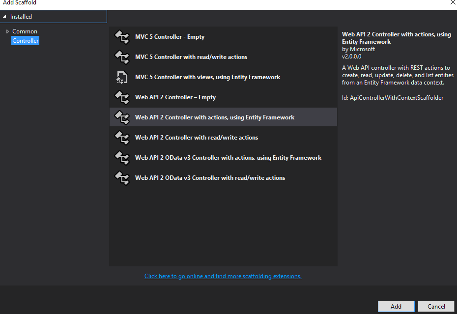 In Solution Explorer, right-click the Controller folder. Select Add -> Controller and name it DepartmentsController.cs