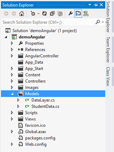 The next step is to add new Model class in the Models directory. And, name it as StudentData.cs.