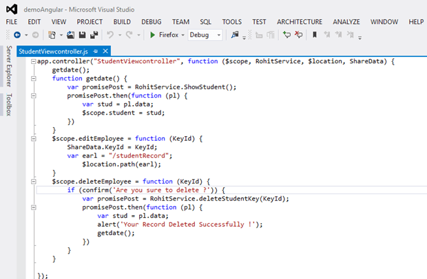 - <span data-ng-click="deleteEmployee(students.KeyId)">Delete</span>