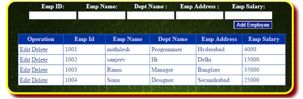 Fill all the Text-boxes and click Add Employee button to see the result.