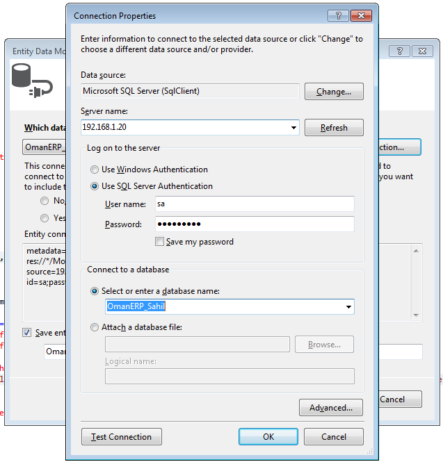 - In the below given box type entity name as SahilEntities and After that click New connection.