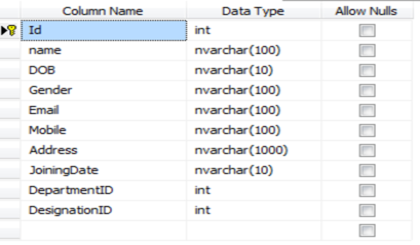 - After creating the database create a table with the name Employee, Designation, and Department.