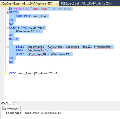 - EXEC cusp_Read@CustomerID =1