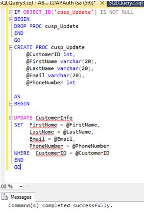 - IFOBJECT_ID('cusp_Update')ISNOTNULL