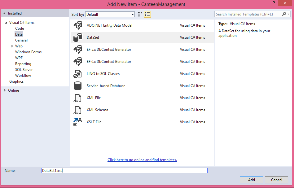 STEP 1: Right click on Solution Explorer and select Add New Item and choose a Dataset.