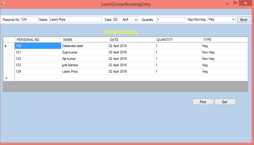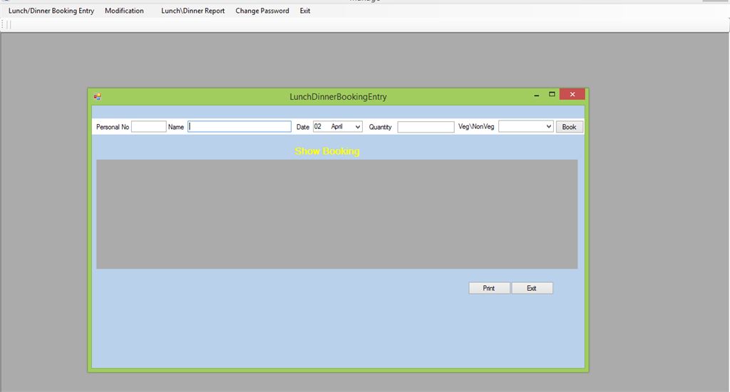 - public partial class LunchDinnerBookingEntry : Form