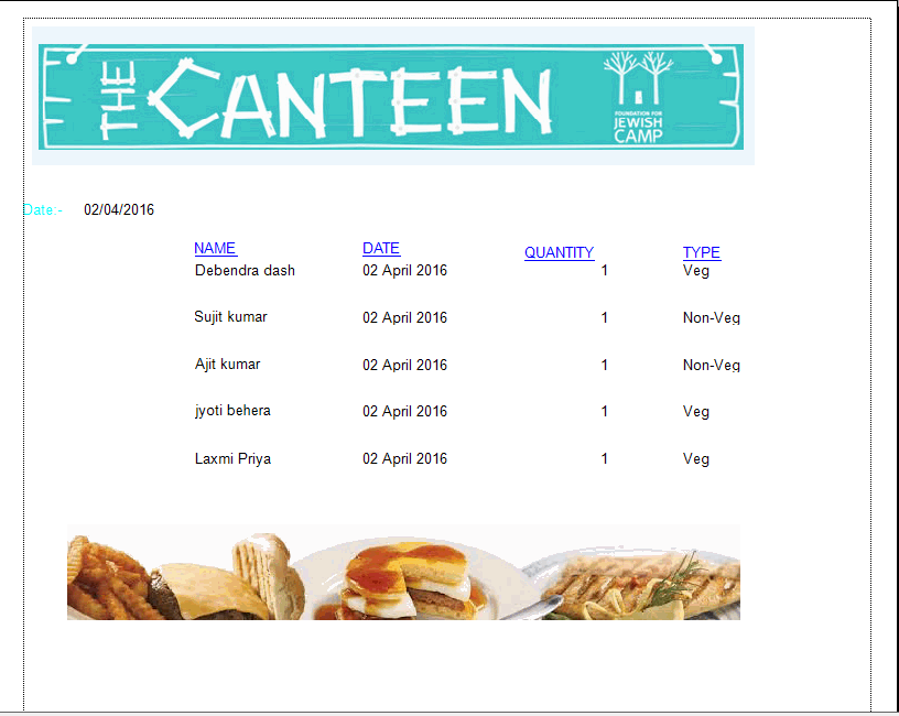 I have designed the report with header and footer of the report and it will print the report as shown above.