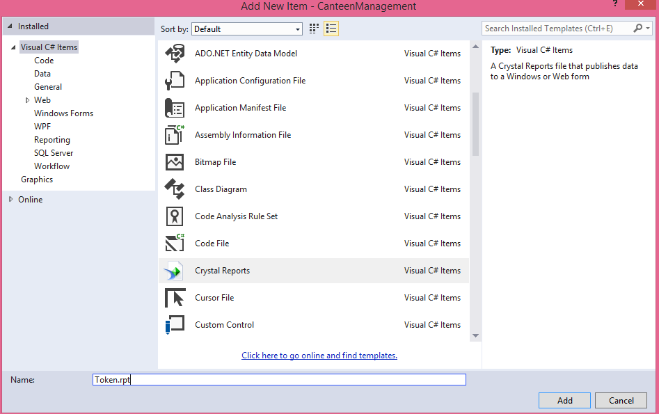 STEP 5: Now adding dataset is over. Now the second task is to add Crystal Report in the project.Right click on the project, Add New Item, then Add Crystal Report.