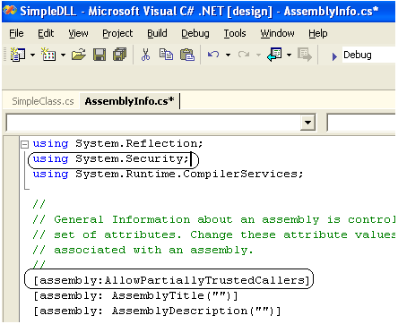 Step 2: Mark the custom assembly with the AllowPartiallyTrustedCallersAttribute