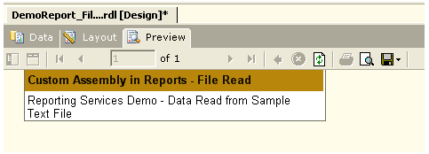 Remove the existing reference of the assembly and add the new reference to the report and then view the report in the Preview window, you will see the data from the text file displayed.