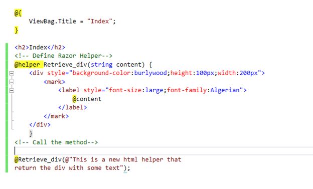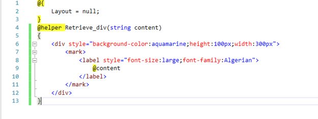 Now using the razor helper name we can retrieve a div that contains a label with some CSS property.
