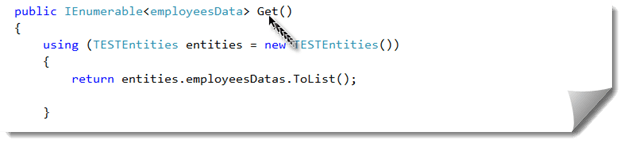 HTTP verb GET mapped to a GET () or GetEmployees () method. So, in our EmployeeController we have GET () method as,