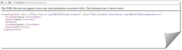 Notice, we get the list of all employees as expected. Now let’s request for a specific employee. In the URI we will specify employee ID 1,