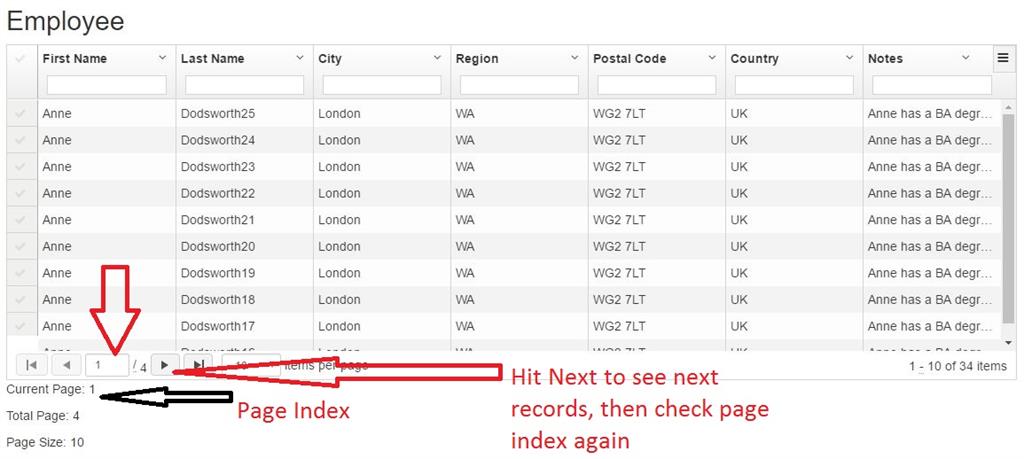 In the given screenshot, you can see the page index and page size. Click "Next" to see the next page index.