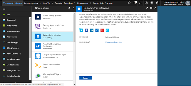 It is not required for you to upload the extensions. It is also possible for you to install these extensions programmatically via PowerShell or Azure Resource Templates. That is, you can add this script to the end of the PowerShell script to deploy a VM. So, once the server gets built, it will install the extension and then executes whatever script you want. So, you can literally use this script extension like a Bootstrapping type of scenario, or like a startup script when you provision your virtual machines.