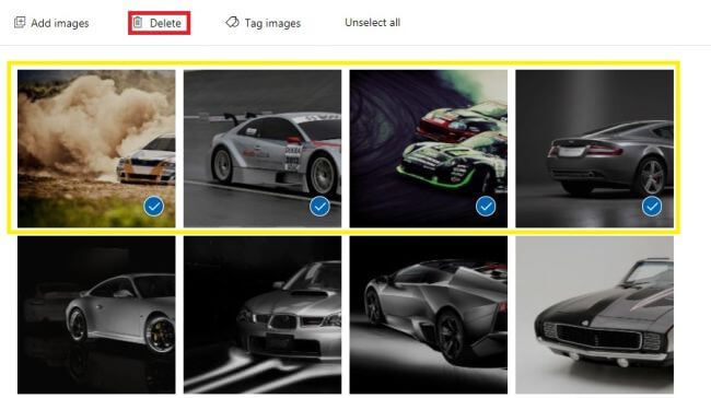 Add some images to train your classifier. Let's say you want a classifier to distinguish between cars and fish. You would upload and tag at least 30 images of cars and fish.