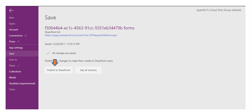 Once everything is done, To make it visible to all users, click File -> Save, then Publish to SharePoint.