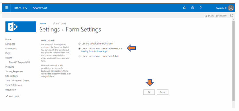 You will see the new option to select the forms from InfoPath or from PowerApps as below.