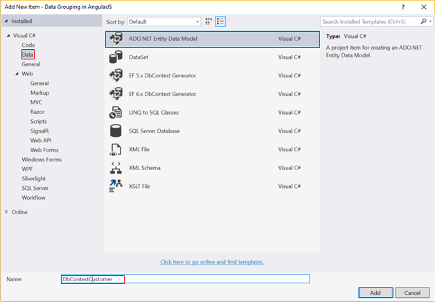Now, we are going to add ADO.NET Entity Data Model. Let’s do it.