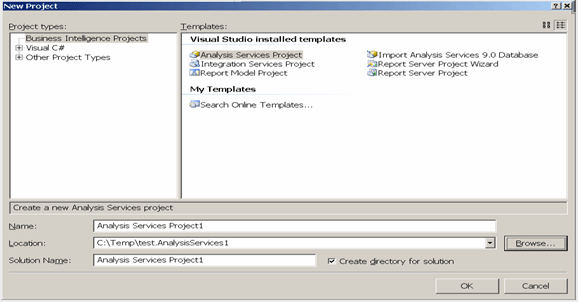 - Launch BI Dev Studio. All Programs --> Microsoft SQL Server 2005 --> SQL Server Business Intelligence Development Studio