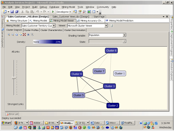 In our case, as shown in Figure 6, CustomerID attribute is the key for identifying each case, the CustomerType and TerritoryID attributes are the inputs for providing information to the data mining algorithm. In the case of the cluster algorithm, there is no need for a predictable attribute.