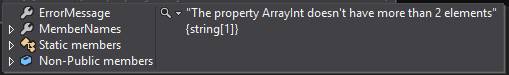 -             Assert.AreEqual(errors.First().ErrorMessage, $"The property {nameof(textclass.ArrayInt)} doesn't have more than 2 elements");