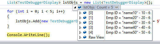 - List<TestDebuggerDisplay> lstObjs = new List<TestDebuggerDisplay>();