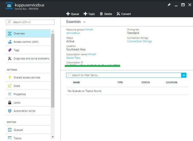 We have now created a Service Bus Messaging namespace.