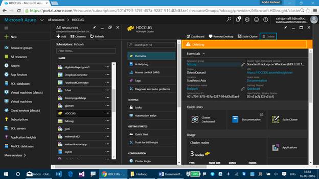 This article will help you learn how to delete an HDInsight Cluster on Azure. Deleting an HDInsight Cluster is very important for us, because it is a paid service that consumes money from your Azure account, from the second you started it, to the second you delete it from Azure portal, irrespective of whether you used its service or not.
