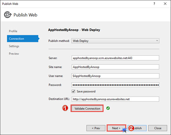 We haven’t added or used the database in this Application. I will show you how to publish the Applications with the database in my next article. Click Next.