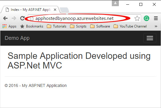 Now, visit the URL of your Application. Our application is live on the Web, using Microsoft Azure.