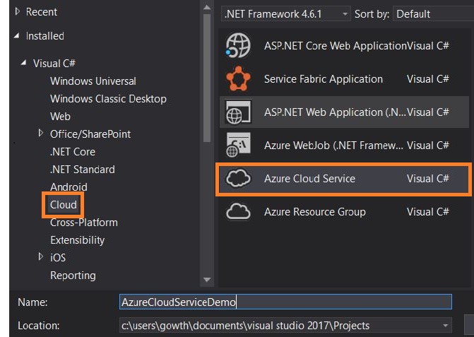Enter a project name and click OK. In my case, I named it as AzureCloudServiceDemo.