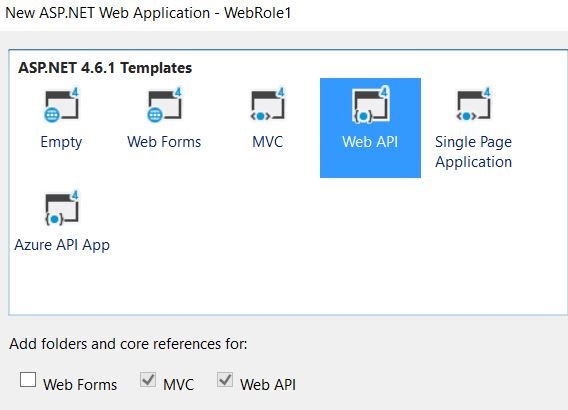 In the next wizard, select ASP.NET Web Role and click on OK. In my case, I have selected Web API project from the wizard.