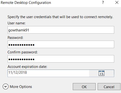 Once you enable the remote desktop, the "Create Account" wizard will be opened. Give the details and save it.