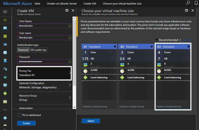 For pricing Tier , choose any configuration that corresponds to the required price list in the section.Choose the desired one and press select to select the disk.