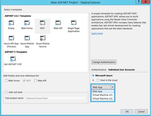 Just select MVC from Templates section and Click OK to create the application.