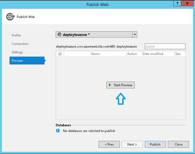 Start Preview will list all the files which will be deployed, once clicked on Publish.